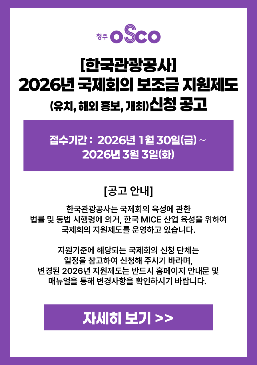 [한국관광공사] 2026년 국제회의 보조금 지원제도(유치, 해외 홍보, 개최) 신청 공고